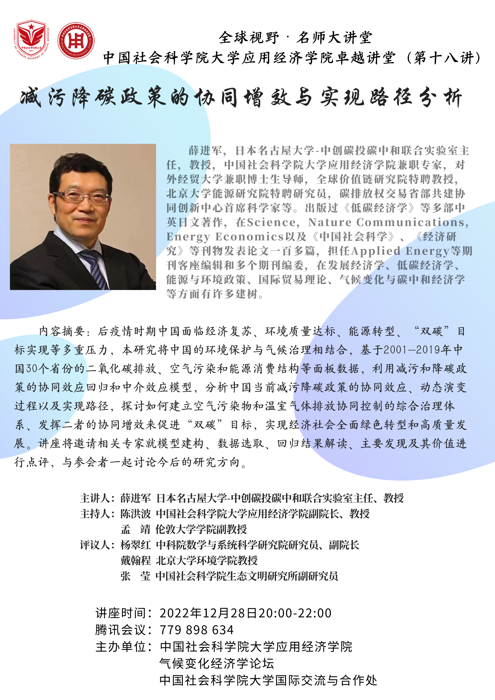 【讲座预告】卓越讲堂 第18讲 | 薛进军:减污降碳政策的
