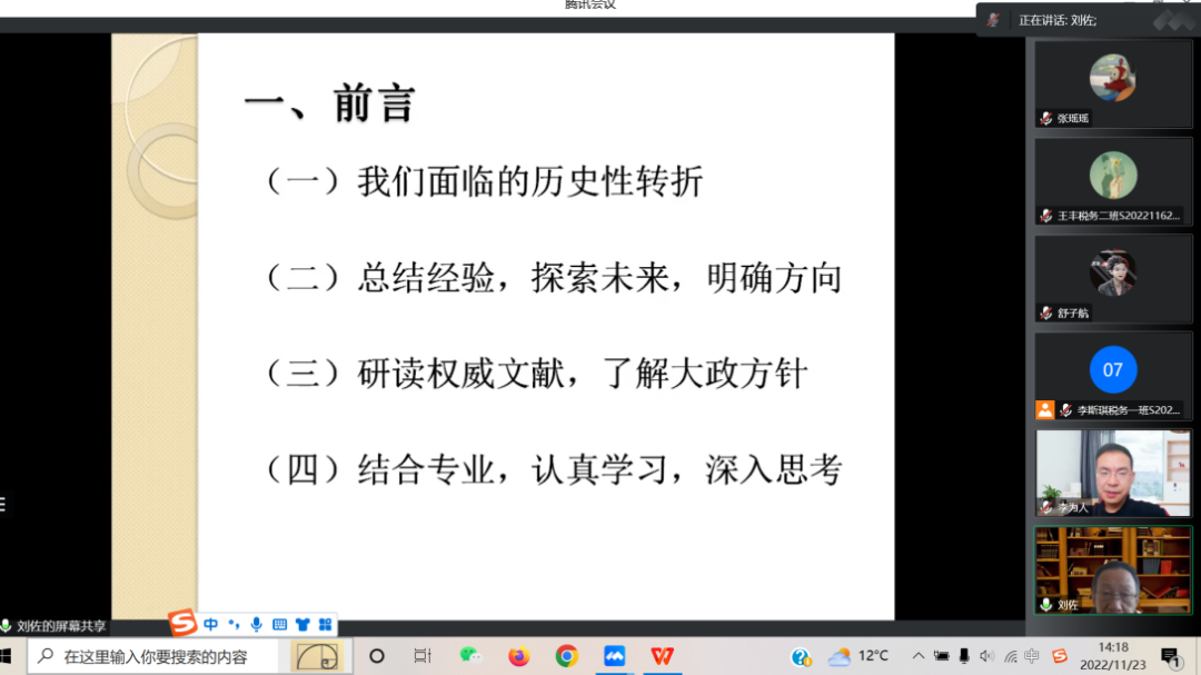 “卓越讲堂”第十五讲暨税务硕士教育中心“财税前沿与税收实务”专题讲座以线上会议的形式成功举办。中国法学会财税法学研究会副会长刘佐老师应邀为2022级税务专业硕士研究生做主题为“中国当前税制改革热点与趋势”专题讲座,讲座由澳博足球比分