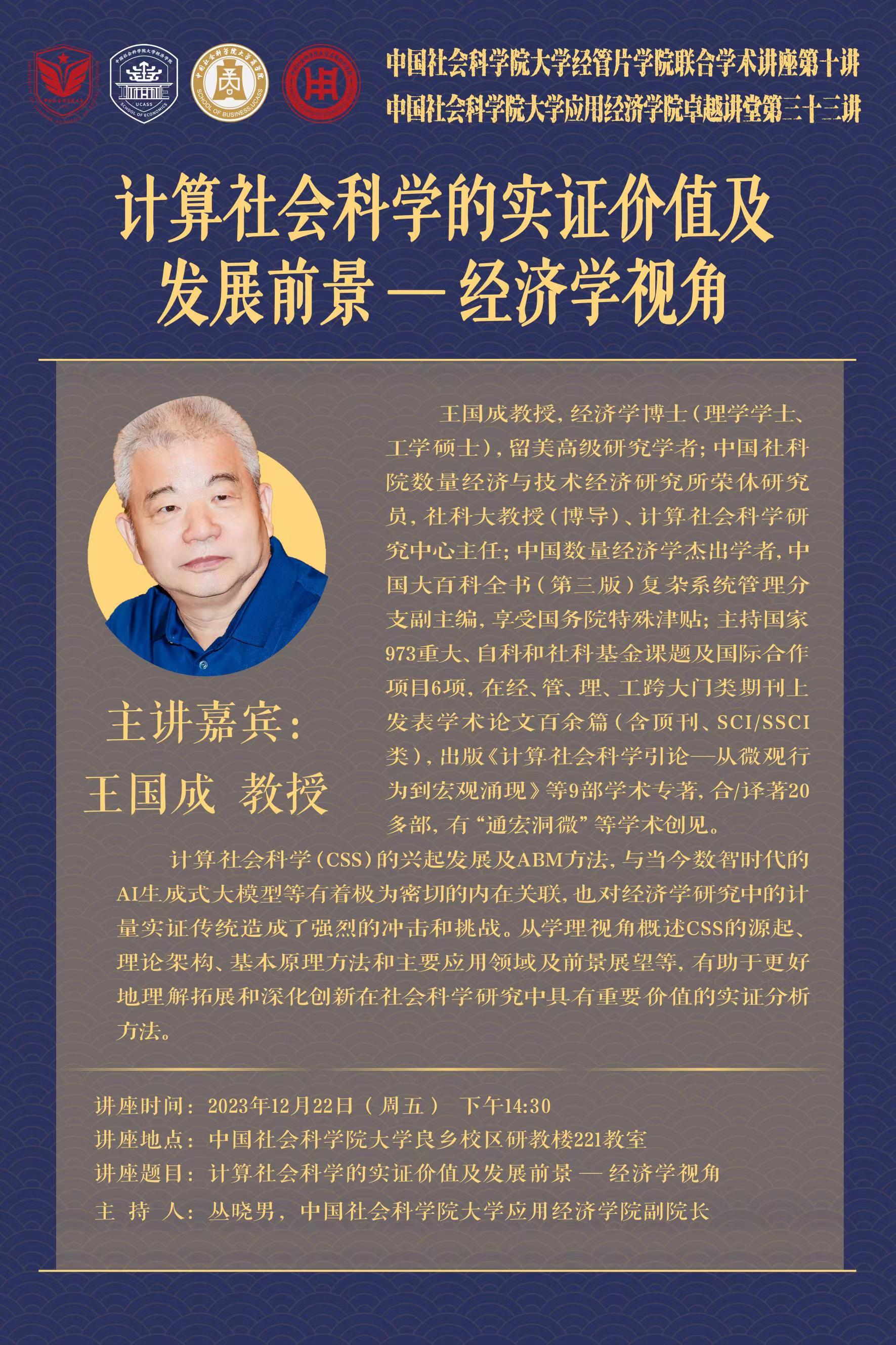 讲座预告|卓越讲堂第三十三讲 王国成:计算社会科学的实证价值及发展前景——经济学视角