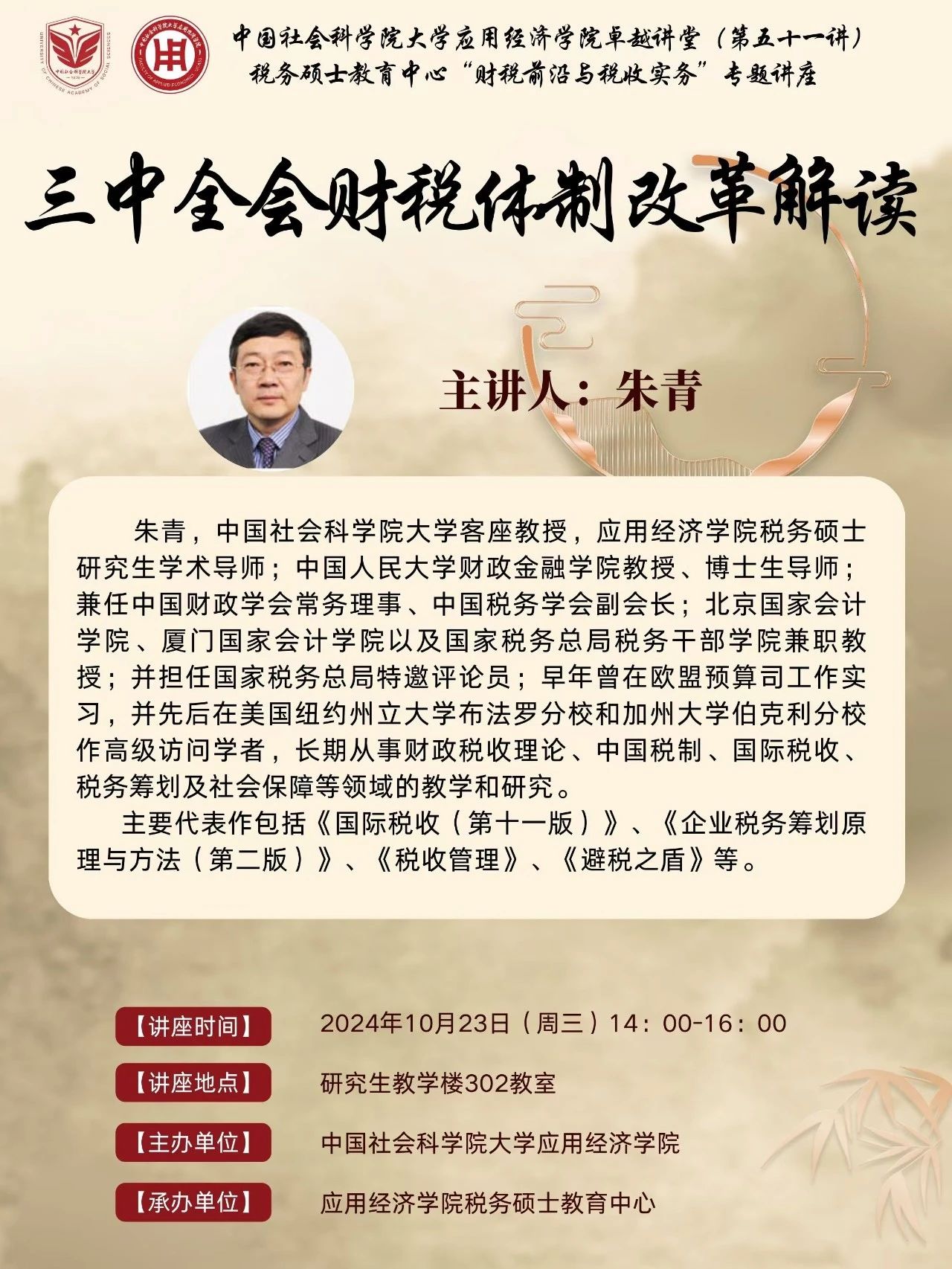 讲座预告|卓越讲堂第五十一讲 朱青:三中全会财税体制改革解读
