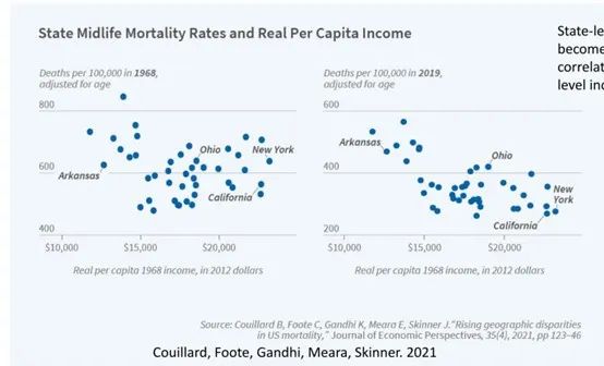 图1 州级死亡率与州收入的负相关性逐渐明显