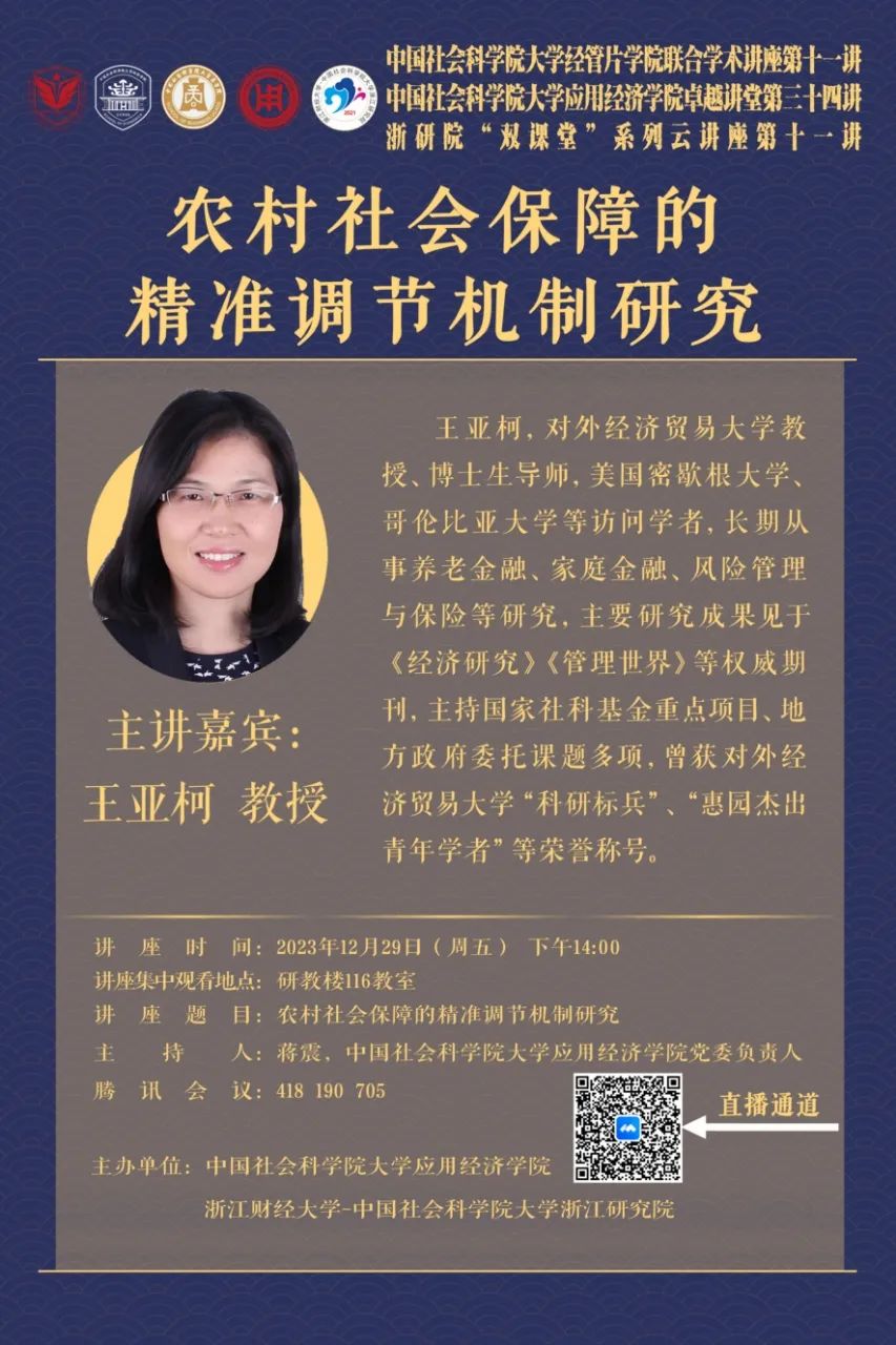 讲座预告|经管片学院联合学术讲座 第十一讲:王亚柯:农村社会保障的精准调节机制研究