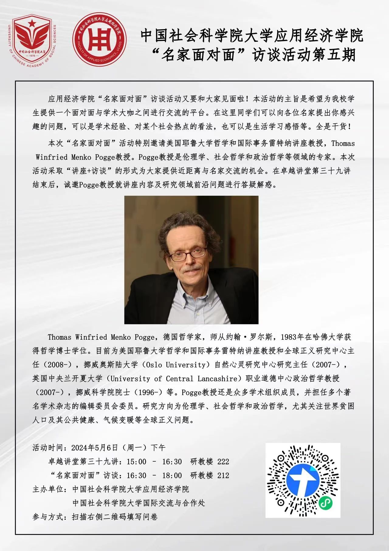 澳博足球比分 第五期“名家面对面”访谈活动——Thomas Pogge教授