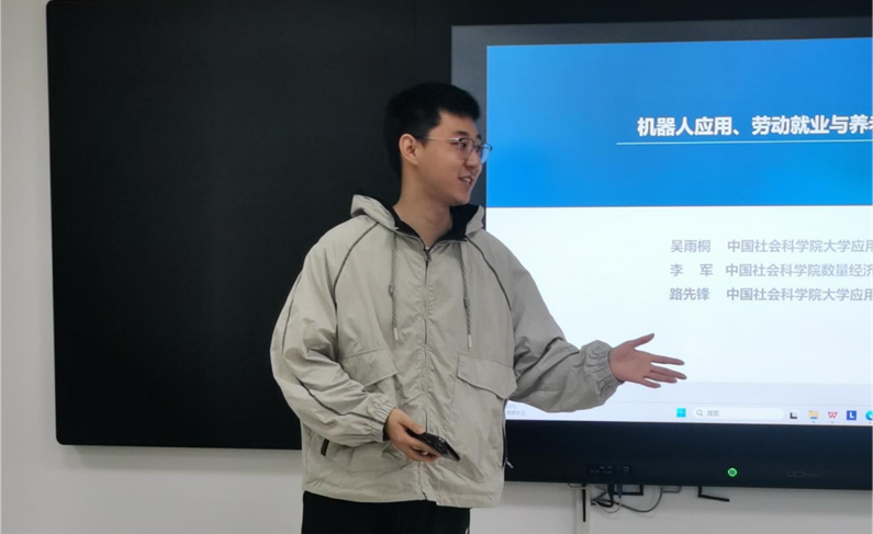 2021级数量经济学专业博士研究生,在《数量经济技术经济研究》《财政研究》《经济学家》等刊物发表多篇学术论文,交流主题围绕《机器人应用、劳动就业与养老金缴费收入——基于中国四省城镇住户调查的研究》(该文章发表于《数量经济技术经济研究》2025年第3期)的相关选题和发表经验展开。
