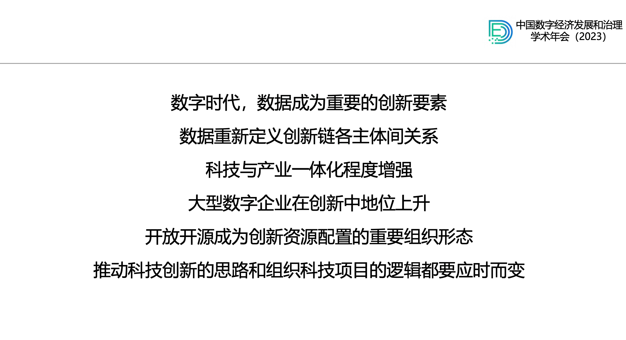 总结而言,数字时代,数据成为重要的创新要素,数据重新定义创新链各主体间关系,科技与产业一体化程度增强,大型数字企业在创新中地位上升,开放开源成为创新资源配置的重要组织形态。推动科技创新的思路和组织科技项目的逻辑都要应时而变。