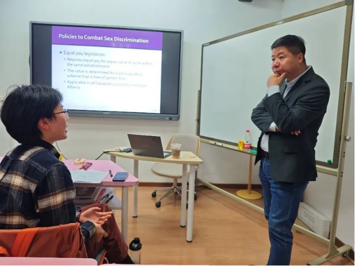 第一期“名家面对面”访谈在良乡校区教学楼318教室成功举办。本次访谈特邀名家为纽芬兰纪念大学Stephen Jarislowsky讲席教授,加拿大多伦多大学兼职教授,美国新泽西大学J. Robert Beyster研究员,加拿大“就业公平法”评审专家,英国皇家艺术学院院士(FRSA, Fellow, Royal Society of Arts)方涛教授。方教授围绕“从诺奖得主视角看歧视”讲解2023年诺贝尔经济奖获得者Claudia Goldin关于针对女性的就业歧视的文章,并与参会本、硕、博学生展开讨论。