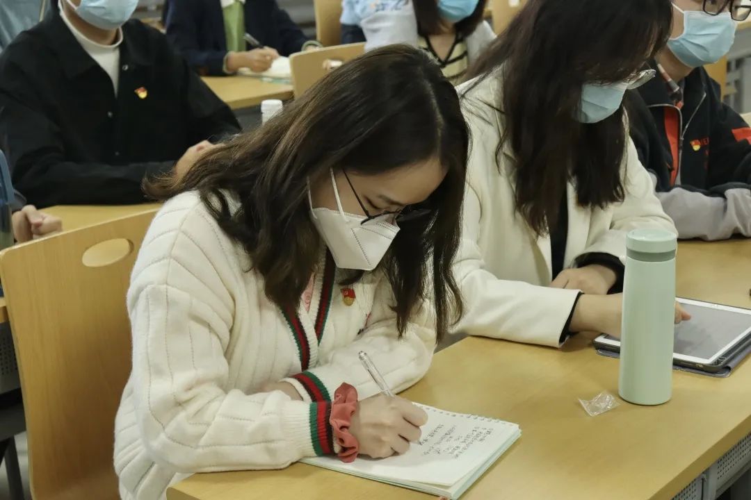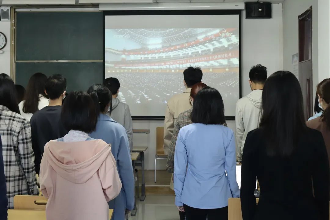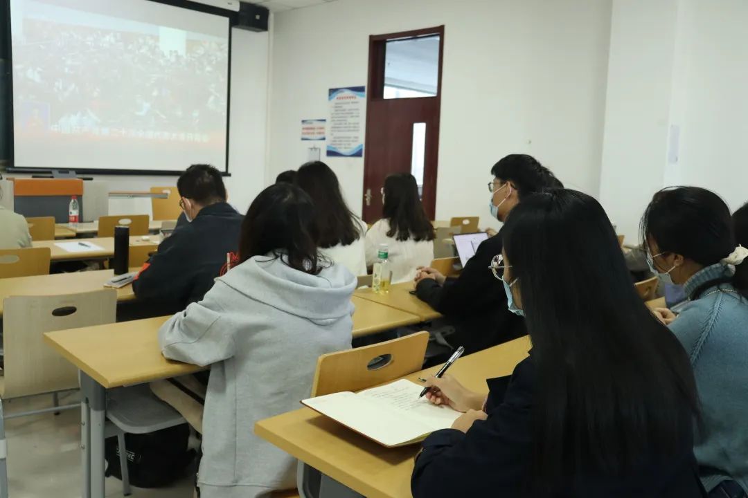 与会同学认真聆听了习近平总书记代表第十九届中央委员会作的主题为“高举中国特色社会主义伟大旗帜,全面贯彻新时代中国特色社会主义思想,弘扬伟大建党精神,自信自强、守正创新,踔厉奋发、勇毅前行,为全面建设社会主义现代化国家、全面推进中华民族伟大复兴而团结奋斗”的大会报告,深入学习领会报告精神。