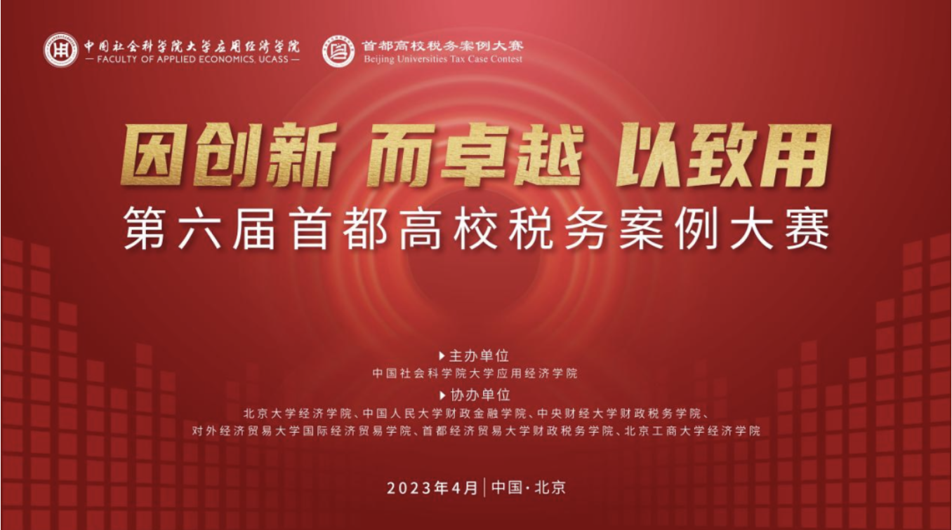 2023年4月15日,“因创新 而卓越 以致用”——第六届首都高校税务案例大赛在中国社会科学院大学良乡校区成功举办。本次比赛汇聚了来自中国社会科学院大学、北京大学、中国人民大学、中央财经大学、对外经济贸易大学、首都经济贸易大学、北京工商大学七所高校的十四支精英队伍。
