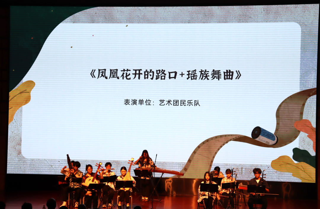中国社会科学院大学艺术团民乐队以《凤凰花的路口+瑶族舞曲》为毕业晚会拉开序幕。美妙的民乐表演如一阕古老的诗章,流淌着千年的音符将大家带入了奇妙的世界。