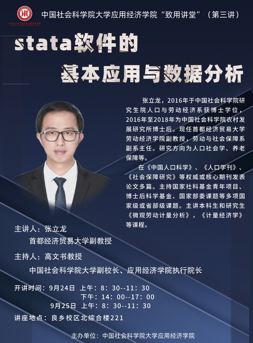 【讲座预告】致用讲堂 第3讲丨张立龙:stata软件的基本应用与数据分析