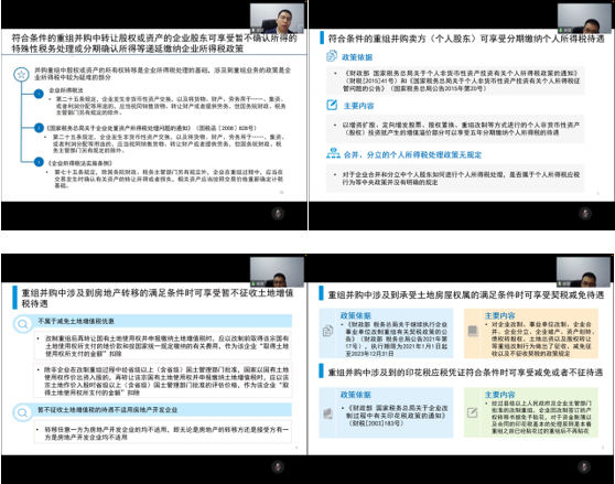 接下来徐老师对企业所得税、个人所得税、土地增值税、契税、印花税方面与企业并购重组相关的政策、规定进行了详细而深入的讲解