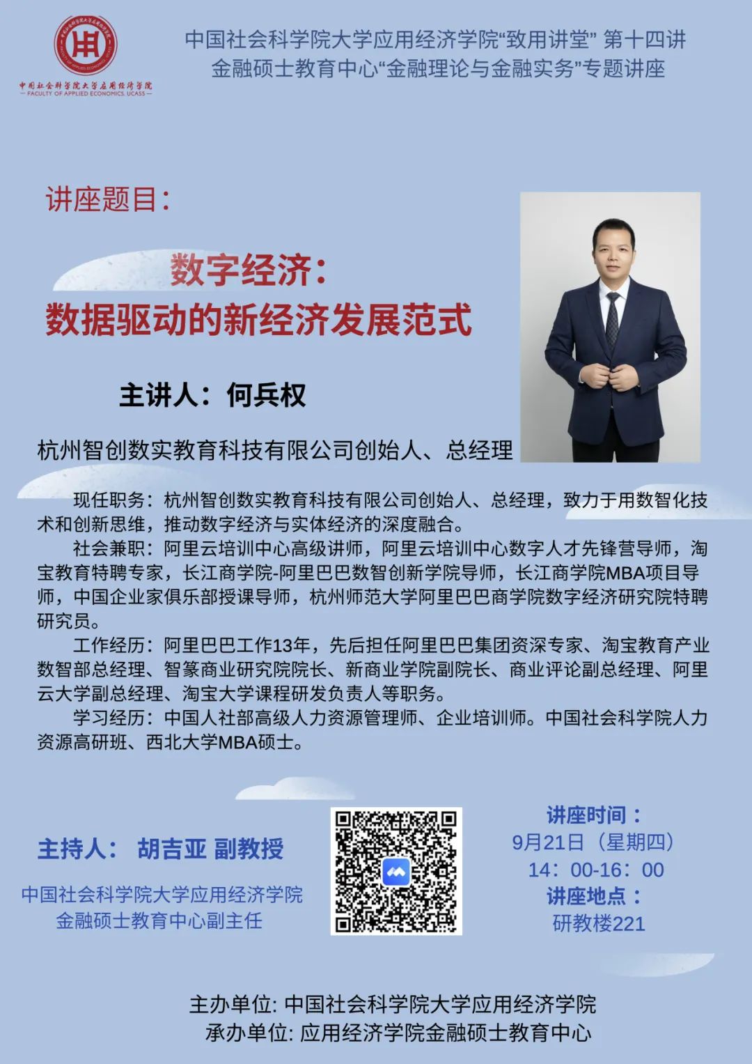 讲座预告 致用讲堂第十四讲丨 何兵权:数字经济:数据驱动的新经济发展范式
