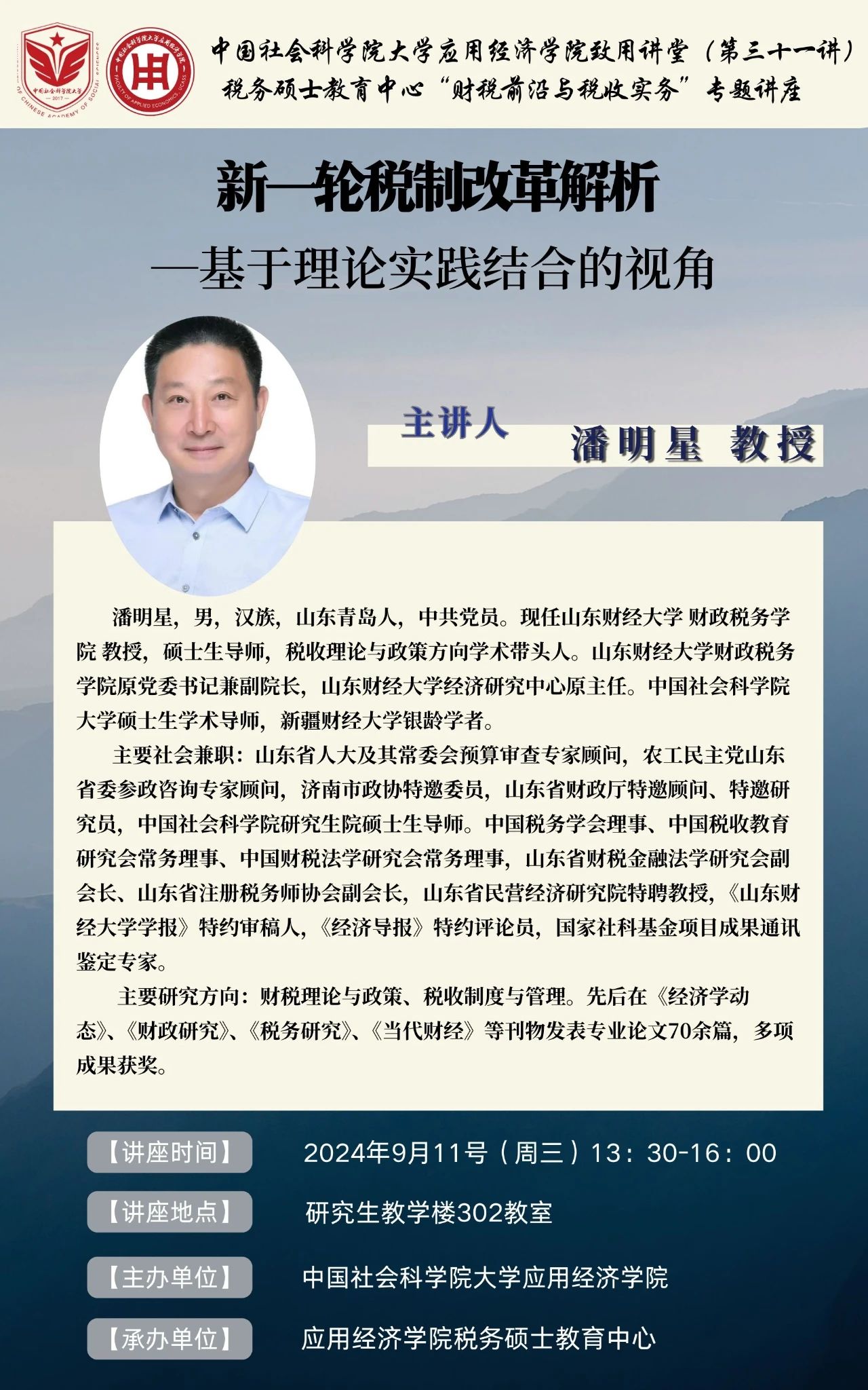 致用讲堂第三十一讲|潘明星:新一轮税制改革解析——基于理论实践结合的视角