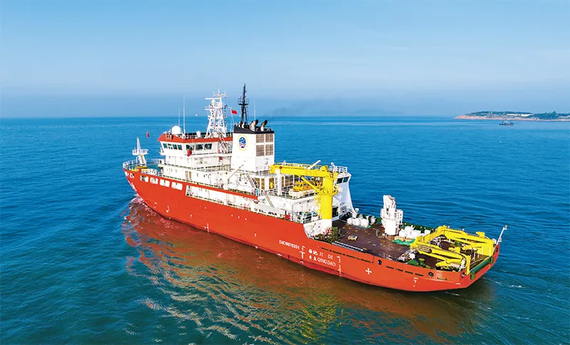 2024年6月24日,由我国自主设计、自主建造的新一代破冰调查船“极地”号交付。“极地”号搭载了多种海洋调查设备,能够承担海冰、三维水体、地球物理、大气等海洋环境的综合观测调查任务。图为2024年7月5日,中国第14次北冰洋考察队“极地”号破冰调查船从山东青岛奥帆中心码头启航出征。
