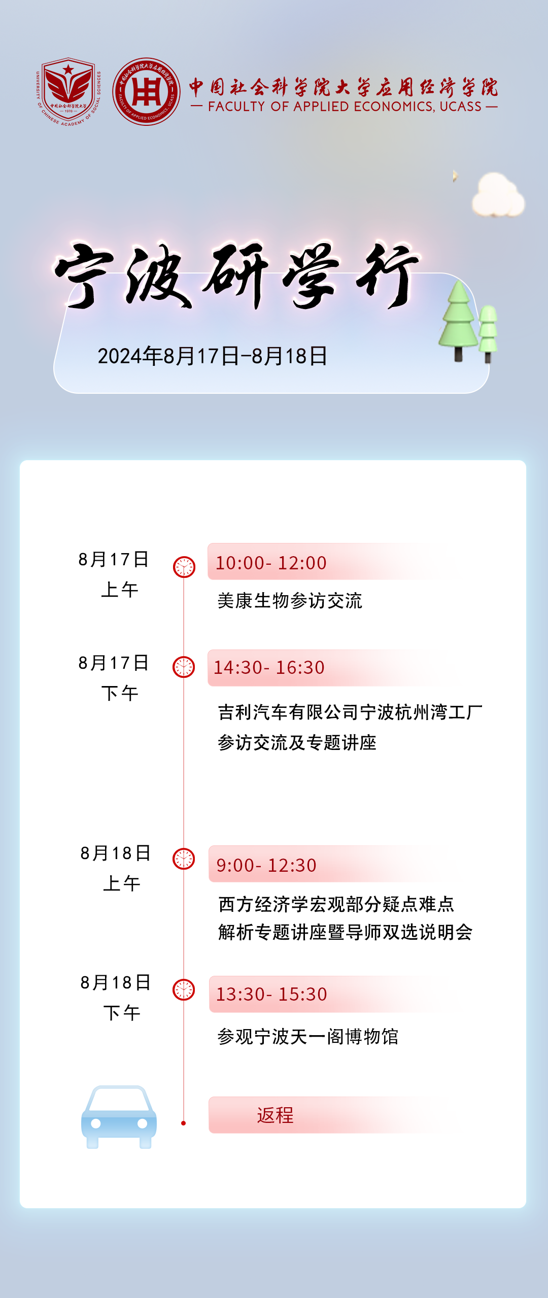 澳博足球比分 高级课程班暑期活动——宁波研学行即将于8月17日启程,这是一场知识与实践的碰撞,也是一次心灵与视野的拓宽之旅。通过企业实地参访,师生一行将近距离感受行业的脉动;同时,也将在学院教授的专业讲授下,深入探索西方经济学宏观部分的奥秘,解开学习路上的重重迷雾。