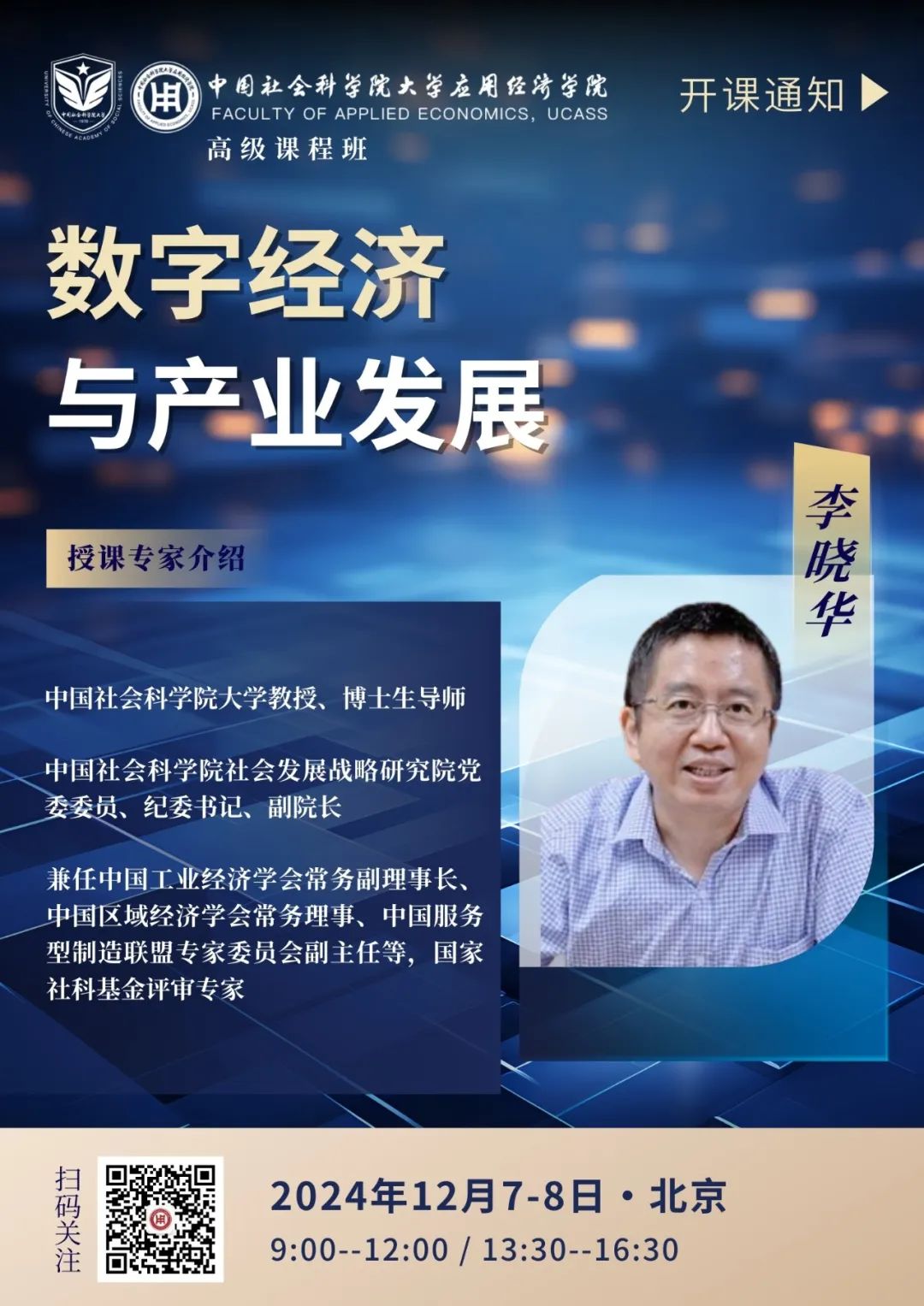 课程预告|24级产业经济与管理方向(京沪)高级课程班12月课程《数字经济与产业发展》