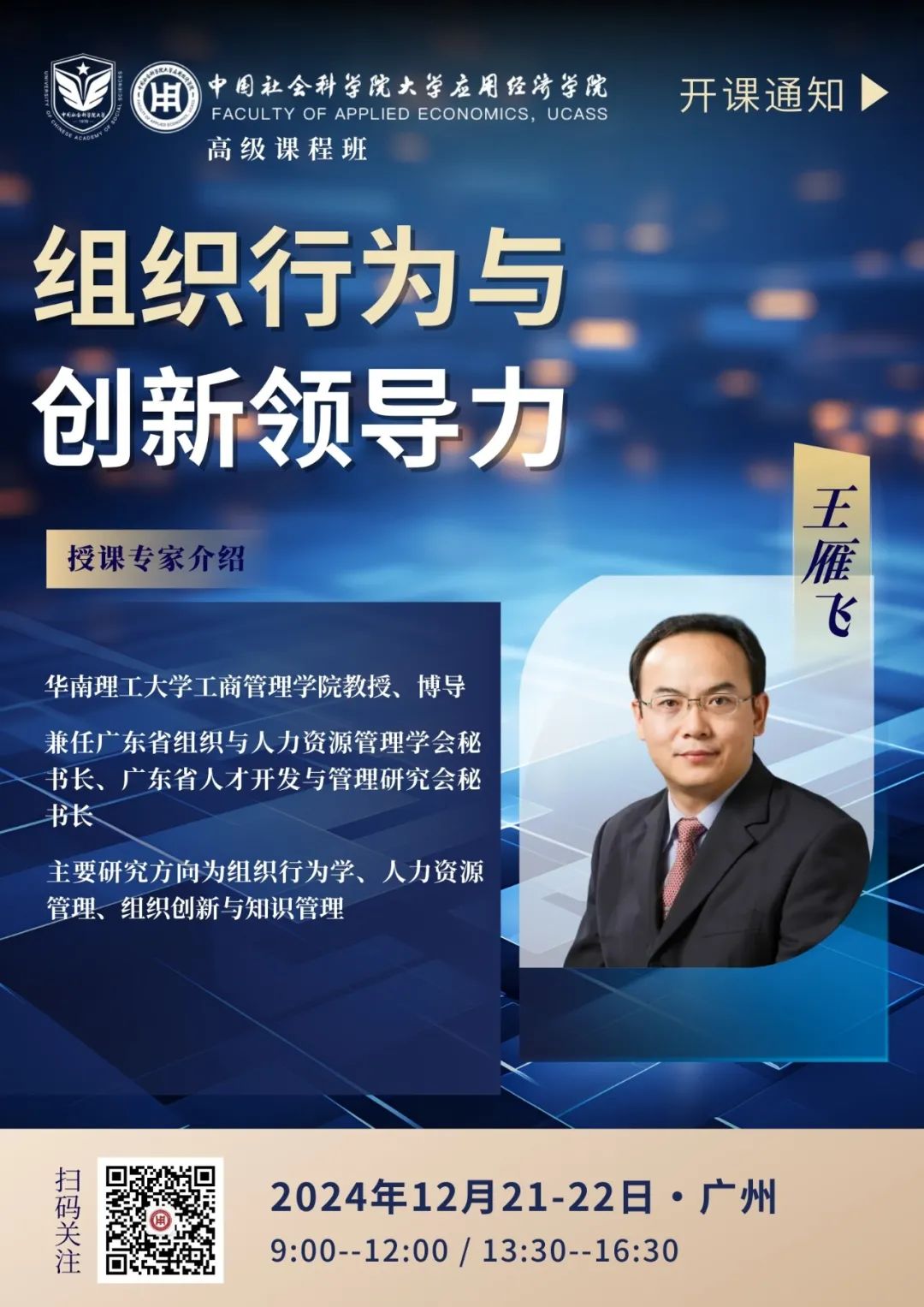 课程预告|24级产业经济与管理方向(深广)高级课程班12月课程《组织行为与创新领导力》
