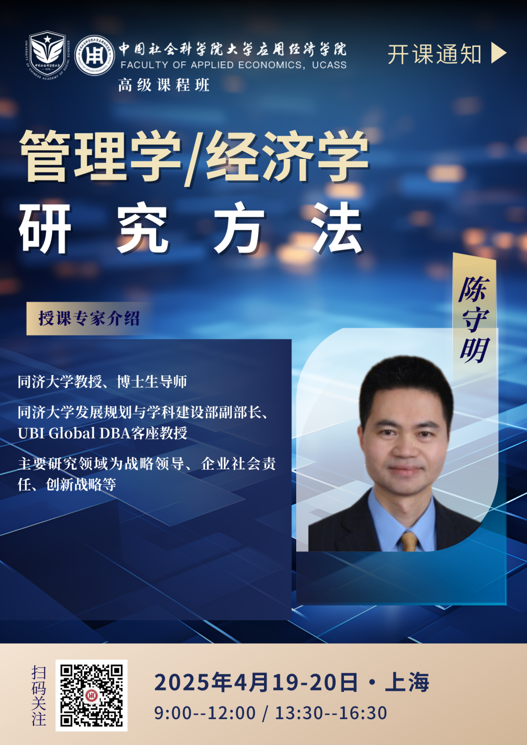 课程预告 |24级产业经济与管理方向(京沪)&领导力与管理创新方向高级课程班4月课程《管理学/经济学研究方法》
