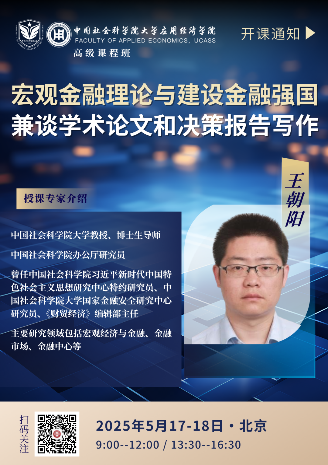 课程预告 |23、24级金融学专业高级课程班5月课程《宏观金融理论与建设金融强国--兼谈学术论文和决策报告写作》