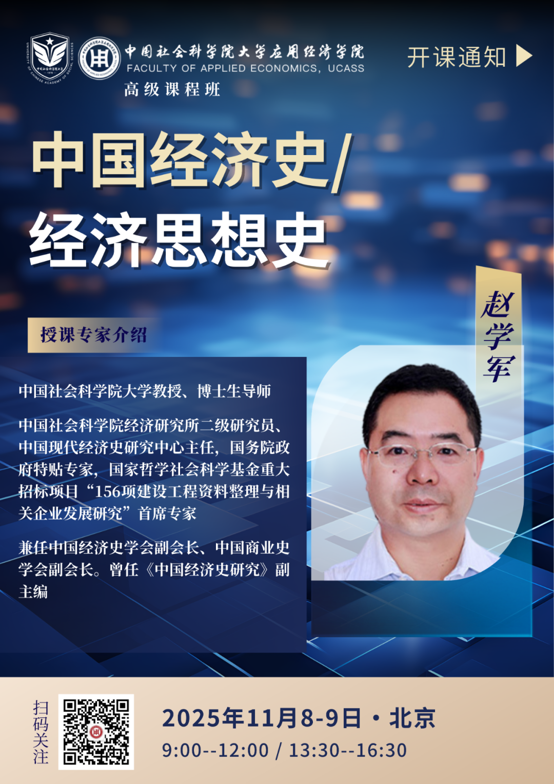 课程预告|24&25级领导力方向&产业经济方向(北京)高级课程班11月课程《中国经济史/经济思想史》