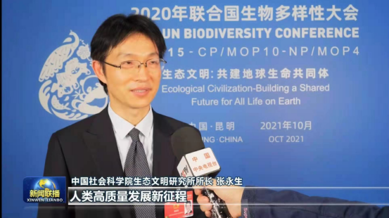 2021年10月,张永生研究员在参加联合国生物多样性公约大会期间接受中央电视台采访。