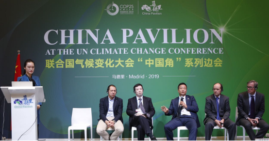 2019年12月,禹湘副研究员(左一)在马德里参加联合国气候变化大会(COP25)期间主持“中国角”边会。