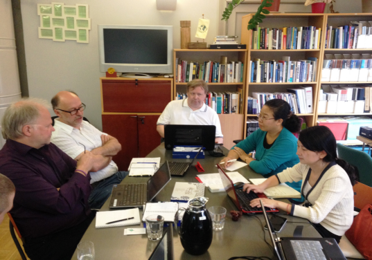 2014年6月,陈迎研究员(右二)、张莹助理研究员(右一)在芬兰参加中芬课题组会议。