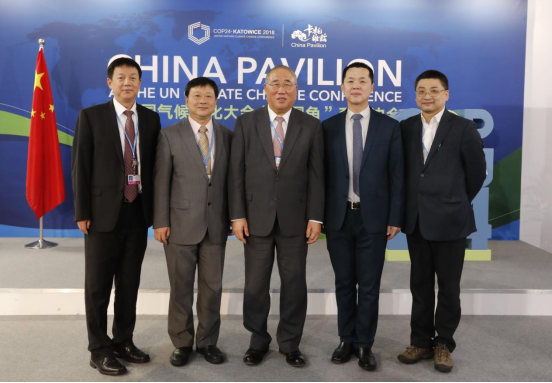 2018年12月10日,王谋研究员(右一)在波兰卡托维兹参加联合国气候谈判大会期间与中国代表团领导合影。