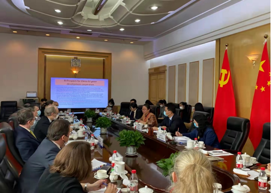2021年2月3日,陈迎研究员应中联部邀请与欧盟、卢森堡、法国、荷兰、比利时驻华使馆官员围绕中欧绿色发展合作、中国碳达峰碳中和政策和行动等进行交流讨论。